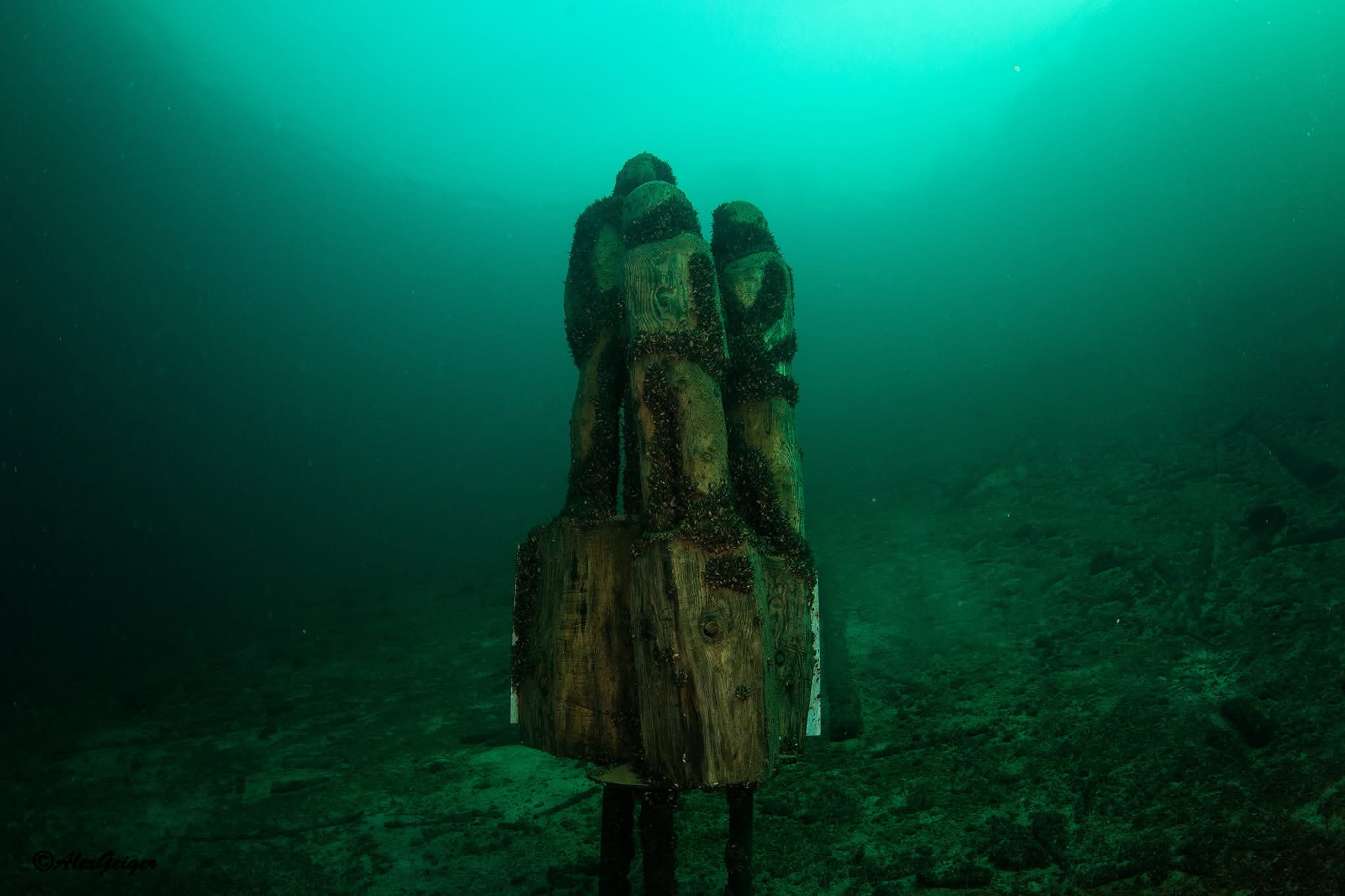 Geht man vom rechten Einstieg leicht nach rechts, stößt man in 18 m Tiefe auf den Anfang der Wand, die nach und nach bis in 32 m Tiefe abfällt. Taucht man entlang der Unterkante der Wand, gelangt man nach etwa 3 bis 4 Minuten zur Holzzille mit aufgesetztem Herzerlklo, das einige Meter von der Wand entfernt auf dem flachen Untergrund liegt.